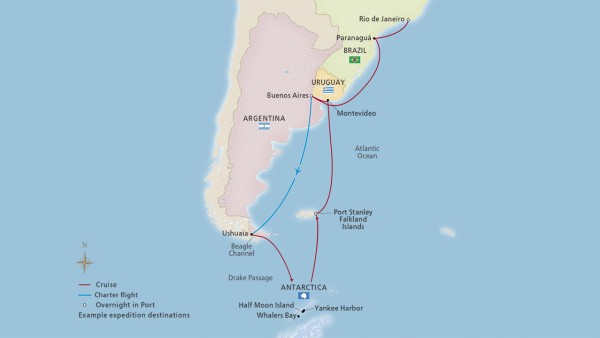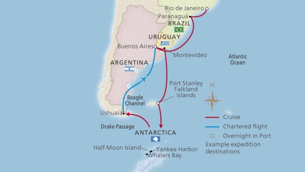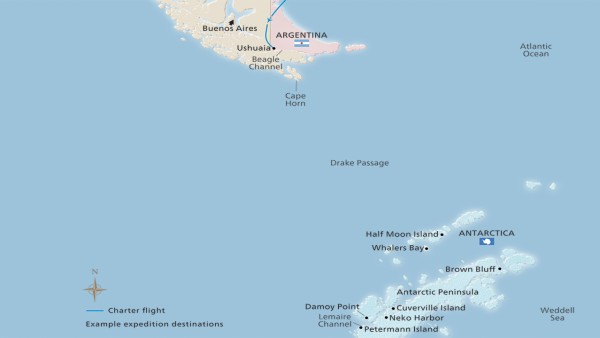 A land of rugged beauty, Antarctica awes those fortunate enough to visit with its towering glaciers and snow-covered vistas. The “Last Continent” is awash in paradoxes: the world’s biggest desert is also the world’s largest ice sheet, nearly two miles thick, with ever-changing temperatures. Its vast seascapes are inhabited by extraordinary species of wildlife—penguins, seals, whales and albatross abound. Virtually unexplored until just 150 years ago, this pristine region surrounding the South Pole belongs to no nation, and is protected by an international treaty for peaceful scientific pursuit.