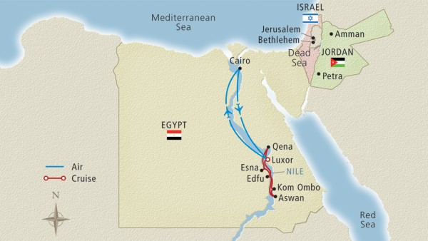 Consisting of two main regions, the mainland in Northern Africa and the Sinai Peninsula between the Red Sea and the Mediterranean Sea, Egypt enjoys a unique vantage point as one of the world’s oldest civilizations. With over ninety percent of its land covered by desert, inhabitants settled along the banks of the Nile River. There, its magnificent monuments—including the Great Sphinx, the monolithic temples at Abu Simbel and the Pyramids of Khufu, Khafre and Menkaure, the last of the Seven Wonders of the Ancient World—remain to tell the stories of its pharaohs and ancient dynasties.